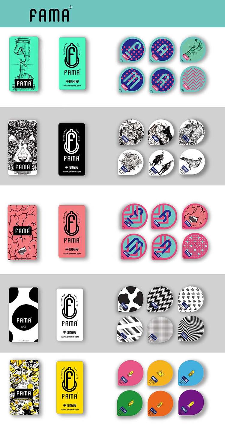 在找上 frog 之前,FAMA 并没有一个完整的系列产品。他们的产品是主打让消费者可以针对自己的需求定制套,不管是外包装上的图片,或是套体本身的尺寸、厚薄、润滑程度等等,也因此并没有一个统一的视觉风格。其他不同风格的插画都可能是 FAMA 外包装的一部分。