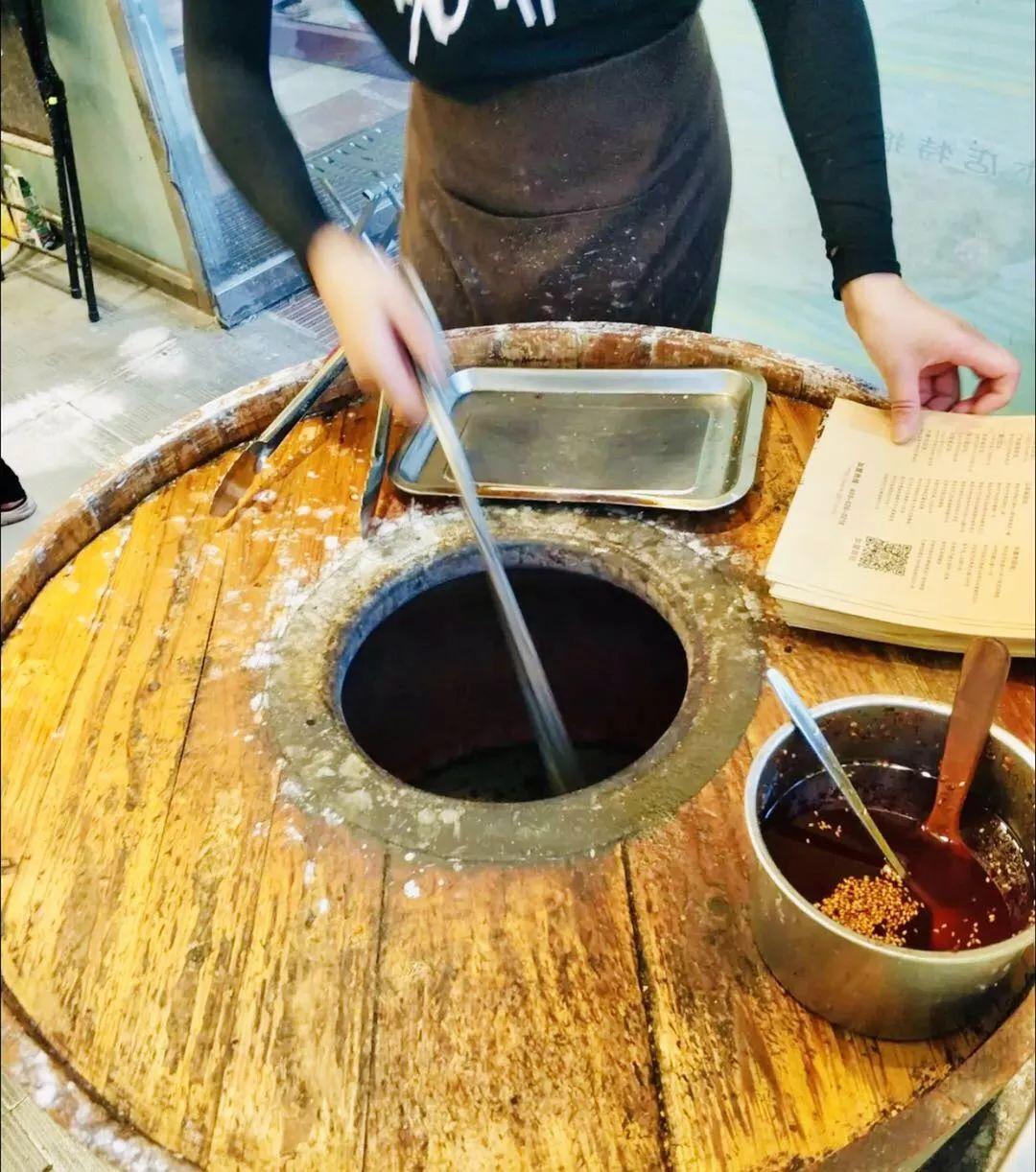 采用炭烤手工制作而成的锅盔,有梅干菜馅、鲜肉馅儿、牛肉馅儿等,锅盔都是现场烤制的,一个个面团裹上馅料擀的薄薄的放进炉子里烤制,烤的香香酥酥,个个都的美味,锅盔一定要现吃!
