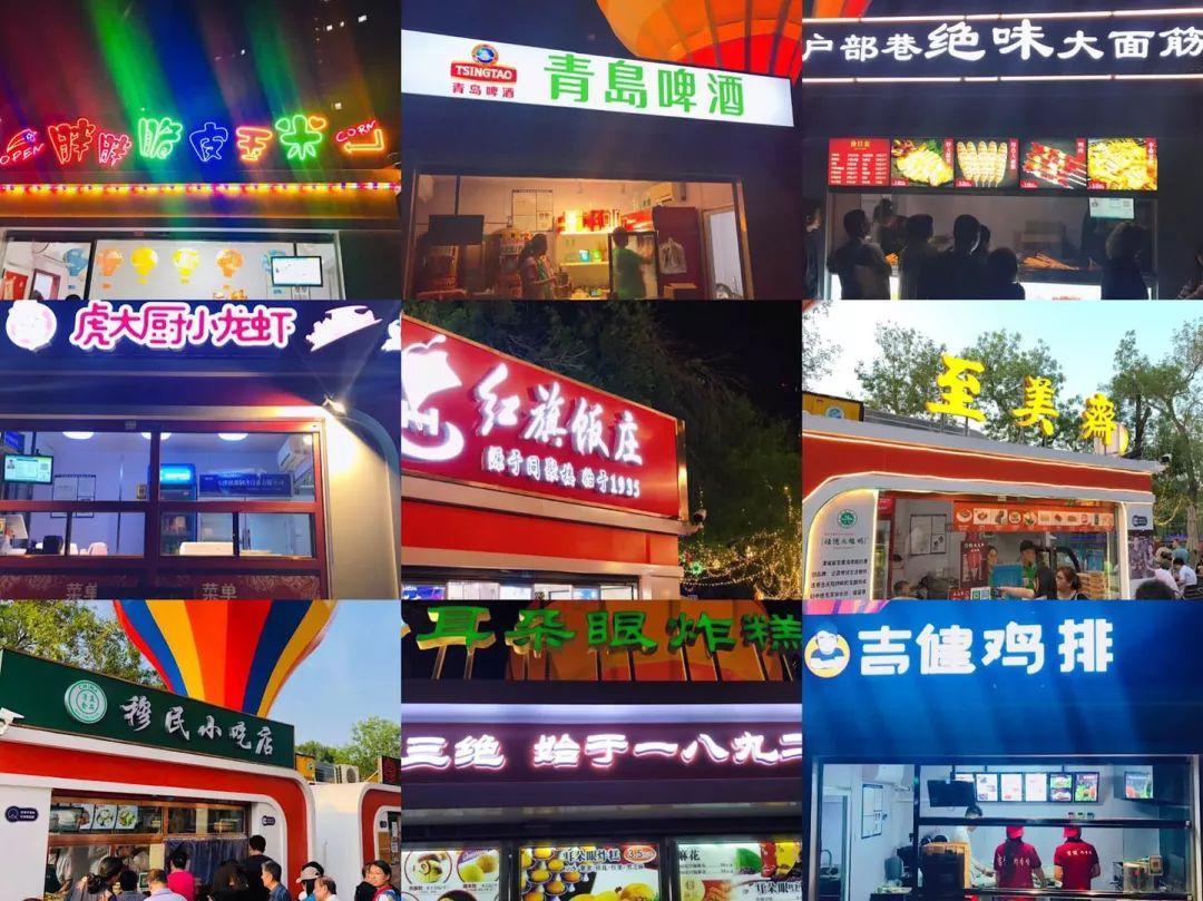 在这里你可以吃到煎饼果子、穆记炸串、二斗栗子等美食,还可以吃到长沙的臭豆腐、东北的锅包肉、吉健炸鸡的特色小吃,李记老北京爆肚真的太幸福了。