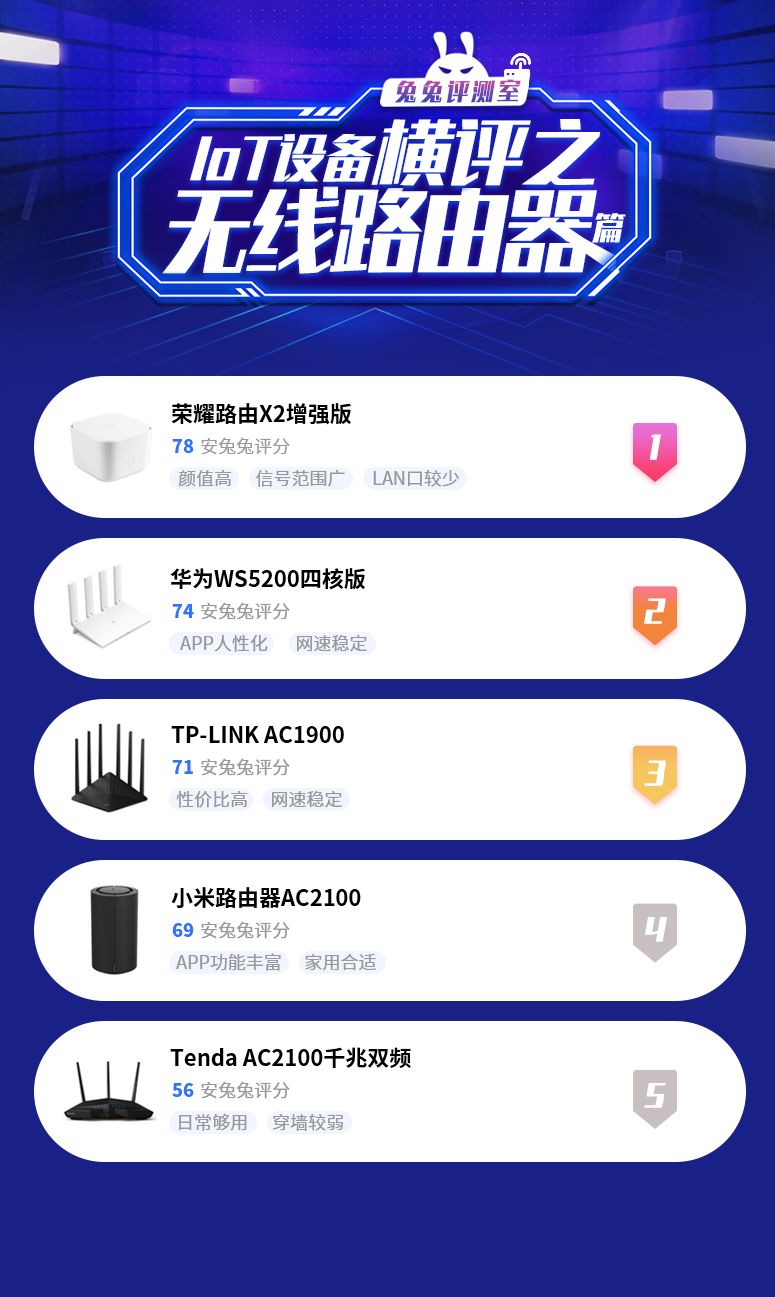 从五款路由器的信号表现来看,天线数量并不能决定信号的强弱,比如七根外置天线的Tenda AC2100的信号极限环境中还不如没有外置天线的荣耀路由X2增强版,当然荣耀的价格更贵一些,至于售价高的华为WS5200,则是在多设备速率下表现不佳落后于荣耀路由X2增强版,而小米路由器AC2100的表现只能是中规中矩,略强于Tenda AC2100。