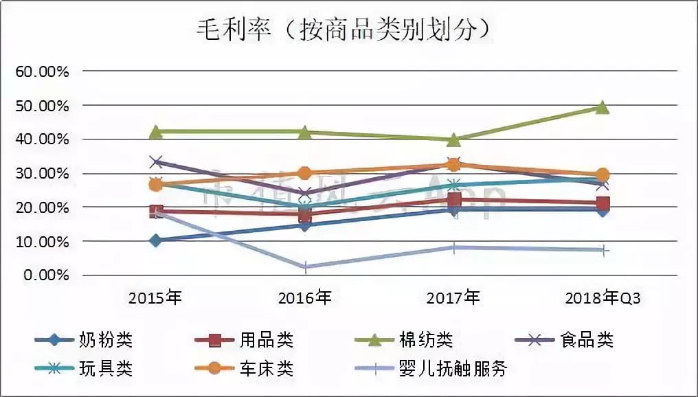 一是公司主要面向母婴市场从事专业连锁销售,与同行业可比公司在商品结构上存在差异;