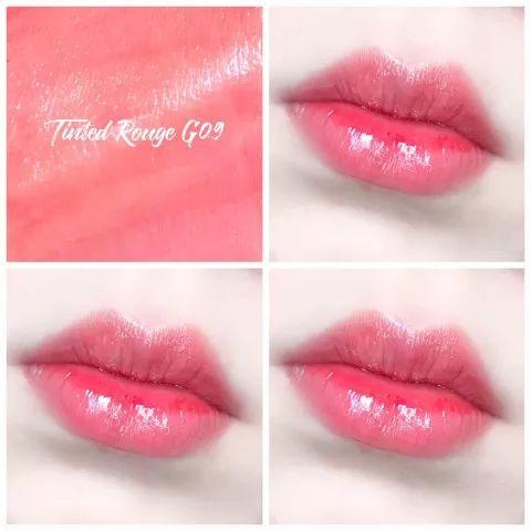 芽芽挑的是G09这个色号,官方介绍是斩男色,刚涂上粉粉的,几秒后就变成水红色,清透好看。
