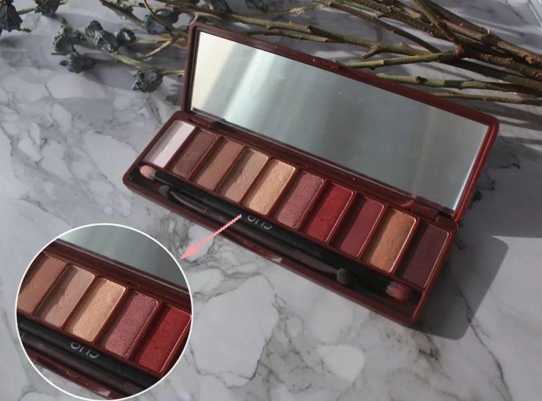 眼影一大地酒红色系为主,从图片看就可以发现它的粉质有点干,压盘压的蛮实的。