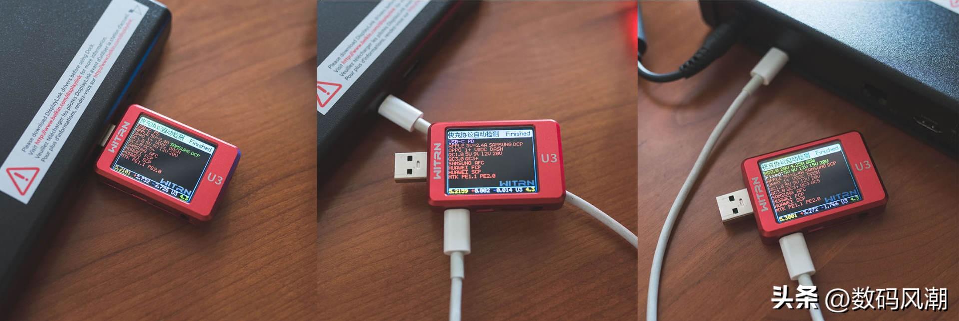 高价显示器通常具备侧边接口,PD3420Q给了三个比较使用的接口,我平时也都用得到。测试了侧边和后置C口的充电协议,侧边属于普通拓展坞级别,后置支持PD 3.0,功率可达65瓦,已经满足90%以上的笔电了。