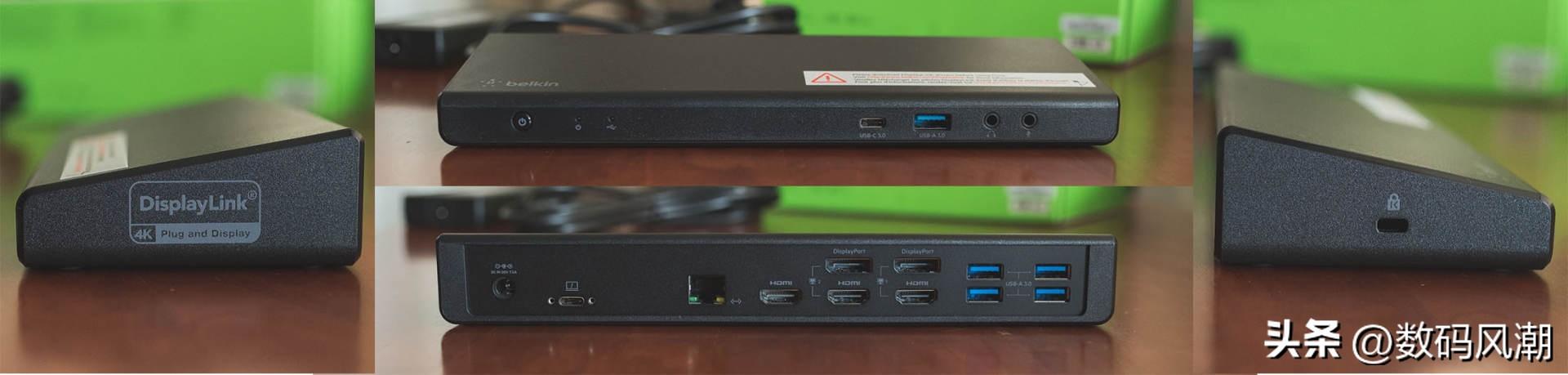 贝尔金15in1三屏扩展可以实现4K@30Hz(3号口)+4K@60Hz+4K@60Hz的恐怖数据吞吐量,所以USB-C口必须支持DP 1.4才行(满血版DP 1.2也不够)。