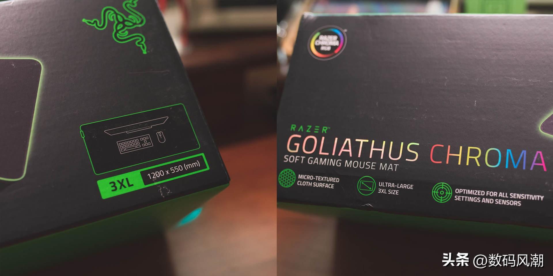 相比鼠标,鼠标垫我确实冲动了一把。重装甲虫迎来了重大升级,在3XL的尺寸(1200mm*550mm)上支持到了CHROMA RGB幻彩,这应该基本可以覆盖单人位书桌的全部面积了。