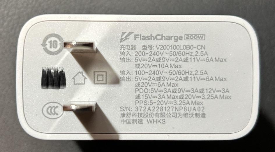 我们先来看看OV家的充电器,康舒代工的,体积和重量上,都比MI家的要小一圈