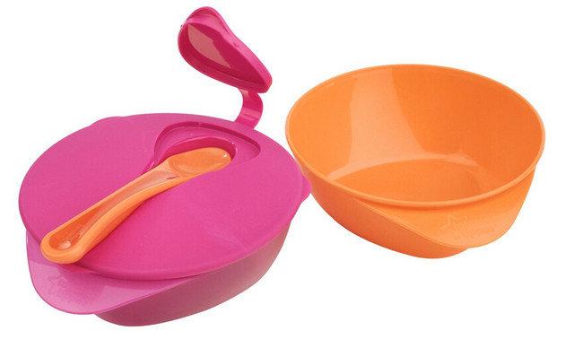 汤美的宝宝碗都采用加盖设计,并且配有汤匙,有些配的感温汤匙,避免因为妈妈的疏忽,导致食物过热烫伤宝宝。汤美天地的辅食碗和两格碗,不仅有加盖设计,碗盖上更有独特的放置小勺的设计,勺子可以放在碗盖上,勺头密封不裸露,清洁卫生,携带方便。