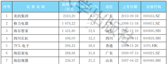 此外,2016-2020年上市的公司16家,品牌价值合计558.89亿元;2001-2005年上市的公司5家,品牌价值合计283.97亿元;2006-2010年上市的公司5家,品牌价值合计239.79亿元。