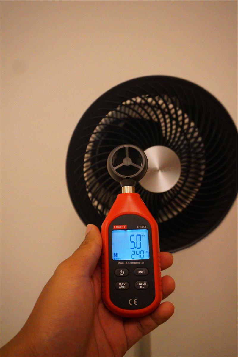 因为买了空气循环扇特别花了100+米入手了个风力测量仪,下面测一下无风情况下的显示数值: