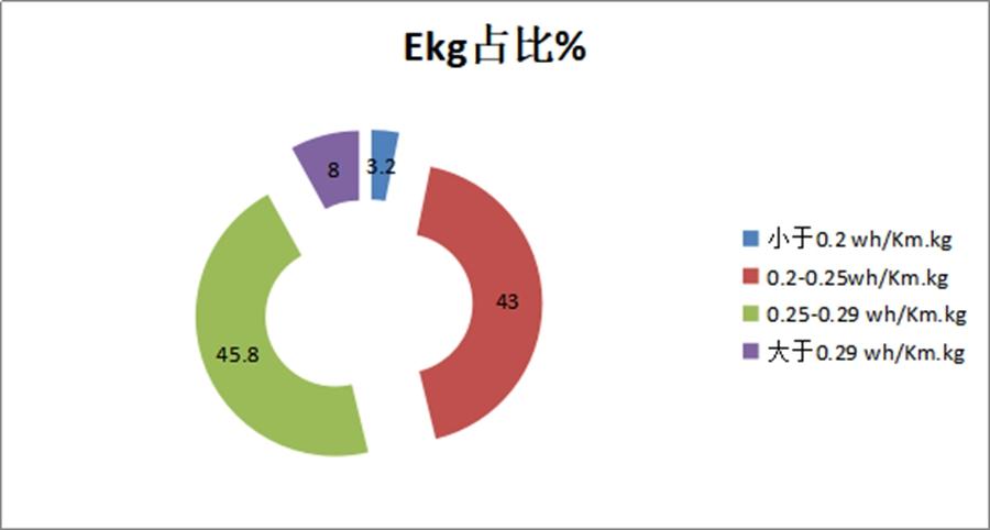 可见,从单位载质量能量消耗量Ekg看,88.8%的申报车型其Ekg在0.2-0.29wh/Km.kg之间,符合2020年新能源专用车补贴新政技术门槛要求。