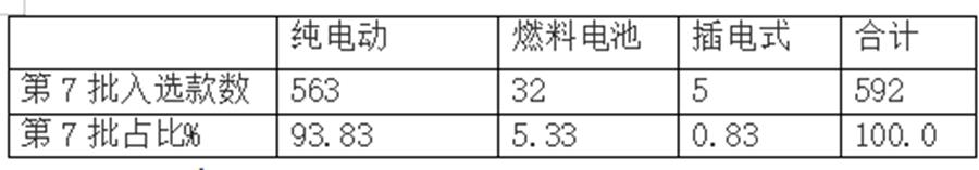 根据2020年第7批《目录》统计,按技术路线划分,入选车型结构: