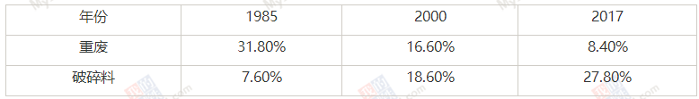 表1:美国重废和破碎料市场占有率的对比
