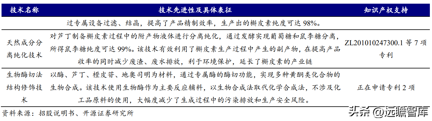 3、亮点探讨:纵深开发产品系族,工艺技术形成独特优势 3.1、产品/研发优势:深耕天然黄酮类化合物提取,多项专利撑起“小巨人”技术壁垒