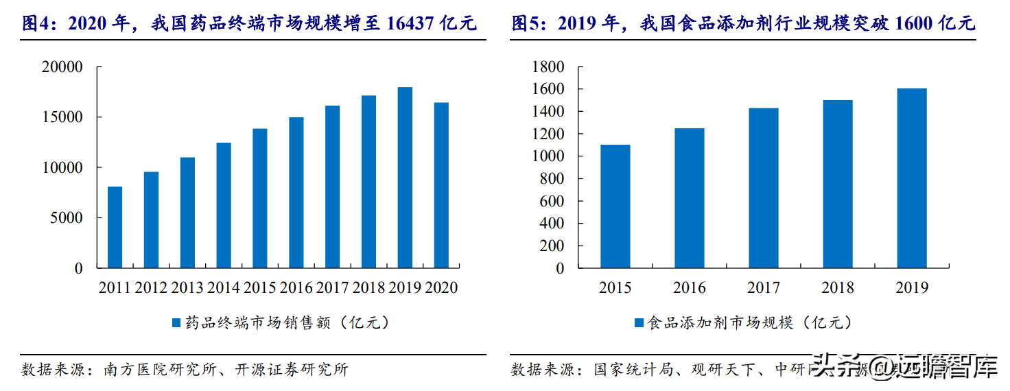 食品市场:植物提取物还可以作为甜味剂、食用色素、抗氧化剂等添加剂广泛应用于食品领域。2019 年,我国食品添加剂行业规模突破 1600 亿元。随着下游食品与餐饮业态的进一步多元化与持续发展,我国食品添加剂行业整体向好。