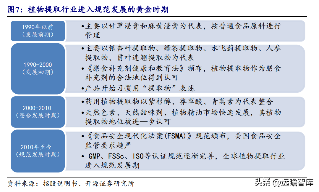 上世纪 90 年代,随着国际“回归自然” 潮流的兴起和我国对外贸易日渐繁荣,我国植物提取物进入起步期;