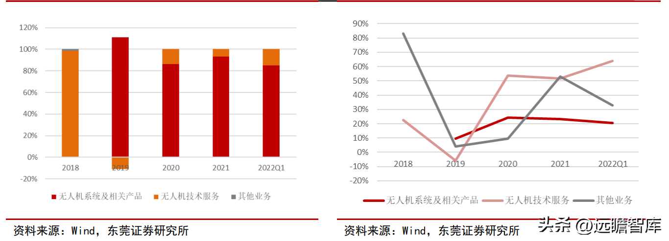 分业务看,无人机系统及相关产品业务毛利率从2019年的 9.47%上升至2021年的 23.09%;无人机技术服务业务毛利率从2018年的22.62上升至2021年的 51.75%。