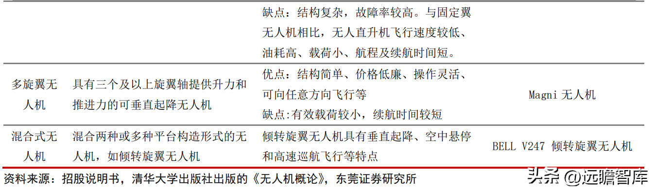 根据清华大学出版社出版的《无人机概论》,按飞行平台构造形式的不同,无人机可分为固定翼无人机、无人直升机、多旋翼无人机和混合式无人机等。