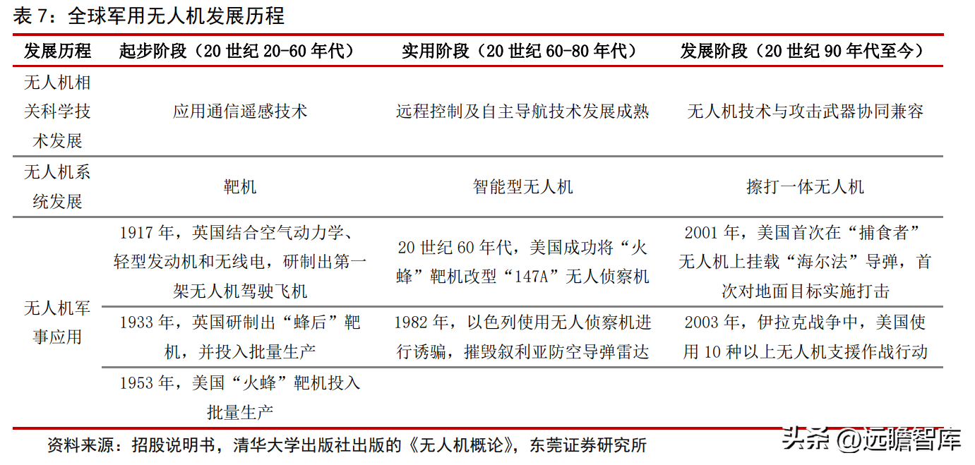 此后,全球军用无人机的发展大致经历了以下几个阶段: