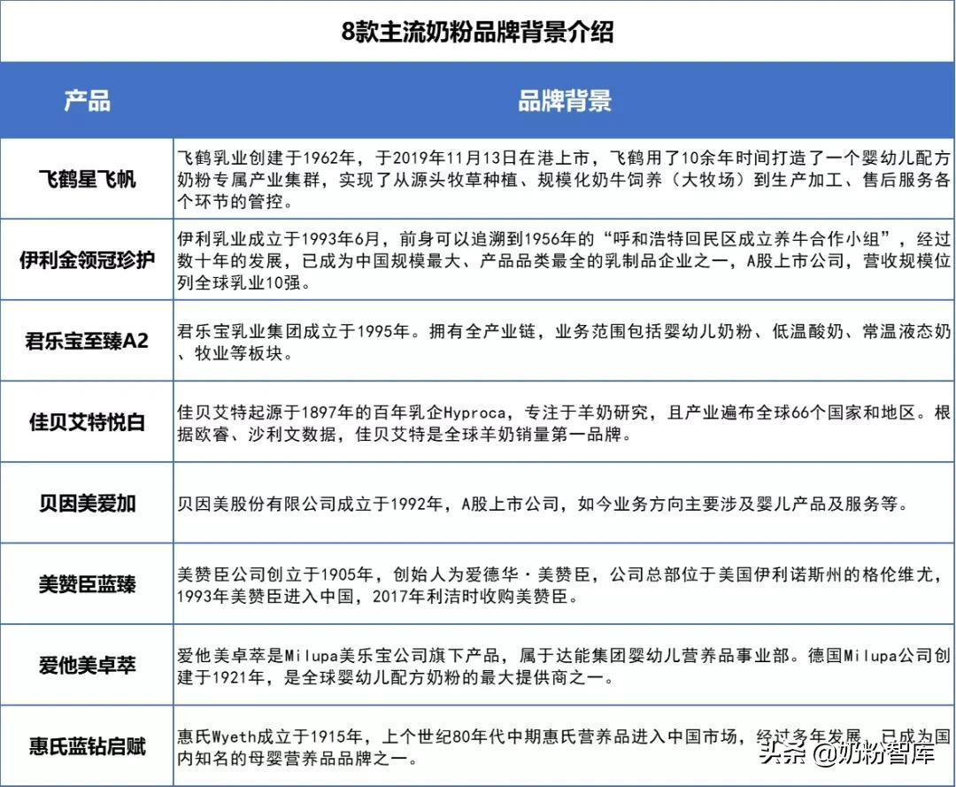 品牌背景体现了乳企的综合实力,本次评测的8款大牌主流奶粉,均具有较强大的品牌力,在研发、养殖、生产、营销、售后等方面有各自的优势。